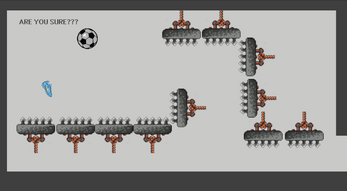 The red shoe kicked the soccer ball far away, and the heroic blue shoe is trying to rescue it by completing different puzzles and taking it back to his town.